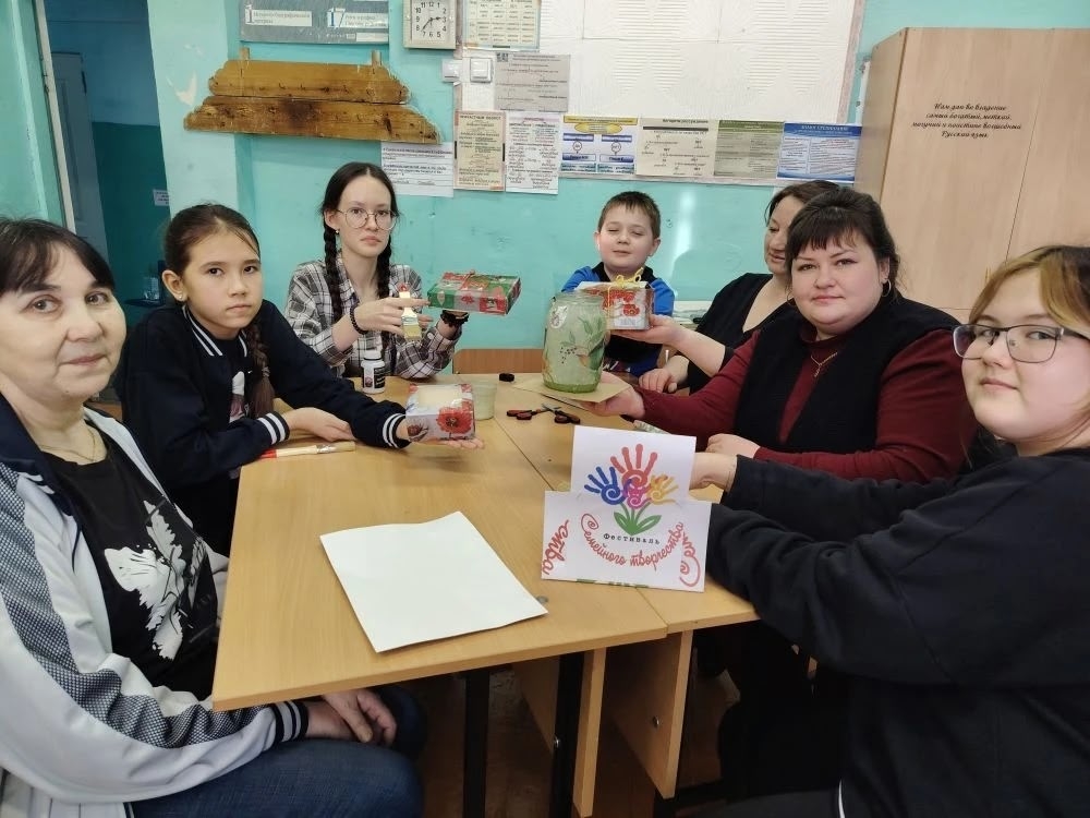 В Витинской школе состоялся фестиваль семейного творчества «Семейный альбом творчества», в рамках которого прошел мастер-класс по декупажу и точечной росписи по стеклу.