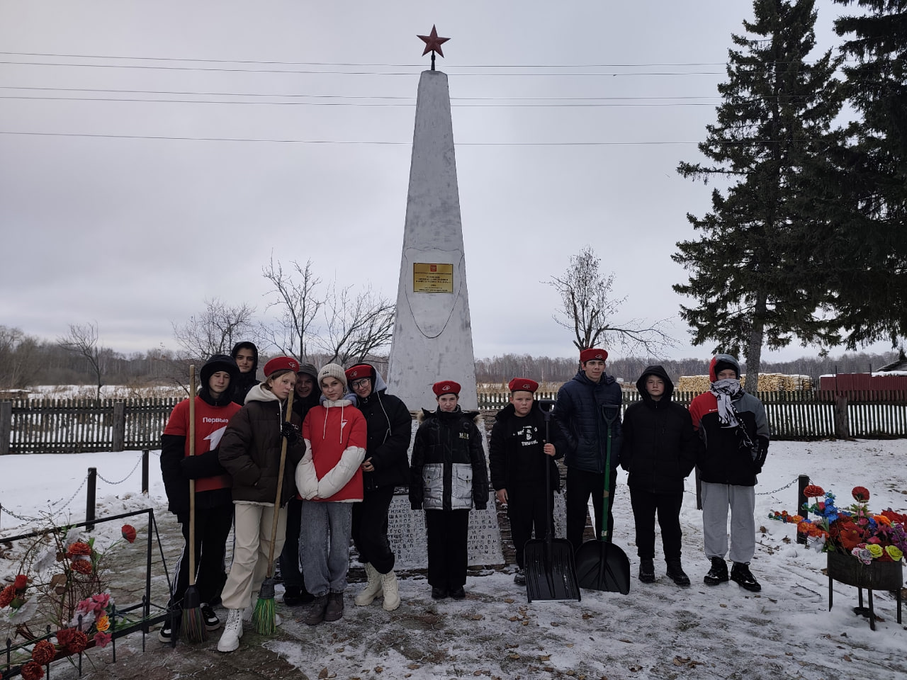 Юнармейцы отряда «Монолит», волонтеры отряда «Орлята» и активисты Движения Первых Гражданцевской школы организовали уборку у памятника воинам-землякам, погибшим в годы Великой Отечественной войны.