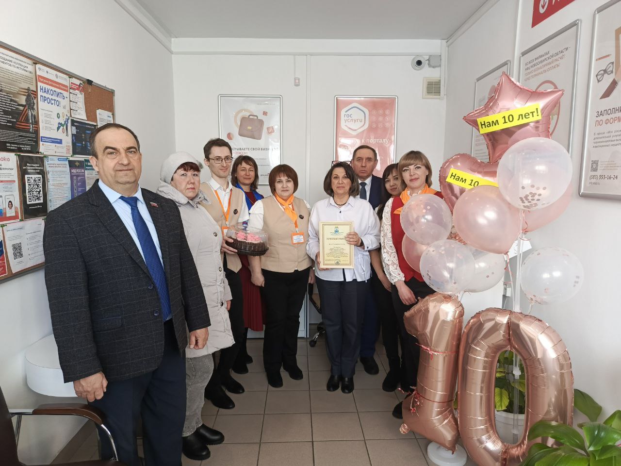 6 марта коллектив МФЦ отметил свой десятилетний юбилей. В этот торжественный день глава Северного муниципального округа Сергей Коростелев, председатель Совета депутатов Северного муниципального округа Игорь Звыков и исполнительный секретарь местного отделения партии «Единая Россия» Светлана Никитина посетили МФЦ с поздравлениями.