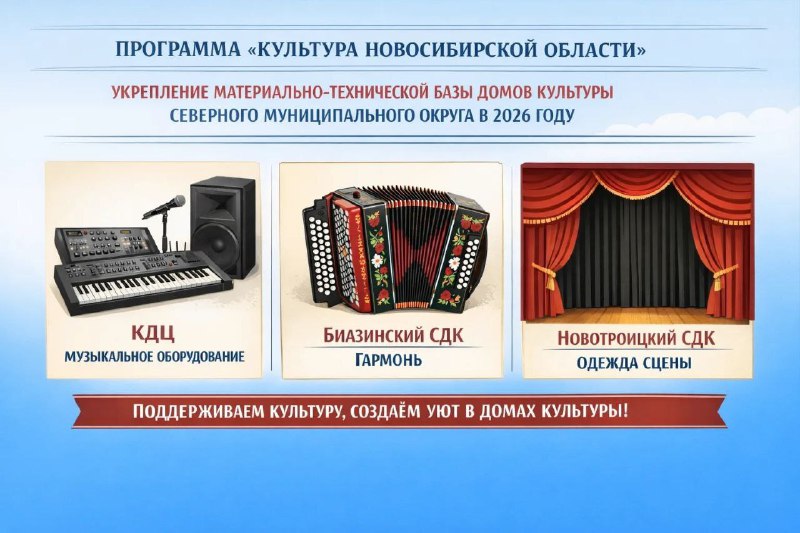 В 2026 году в рамках национального проекта «Культура» запланировано укрепление материально-технической базы учреждений культуры Северного муниципального округа.