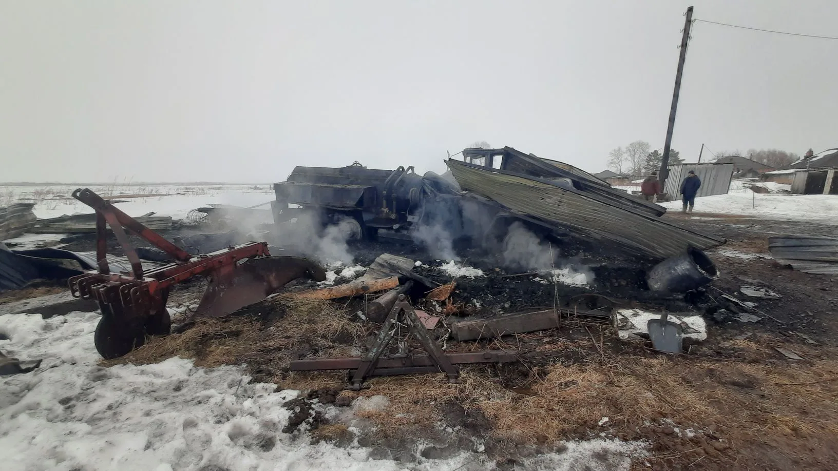На улице Центральная, 31 огнем уничтожен гараж и 2 единицы техники. Площадь пожара составила 119 кв.м. Предварительной причиной возгорания стало короткое замыкание электрического конвектора.