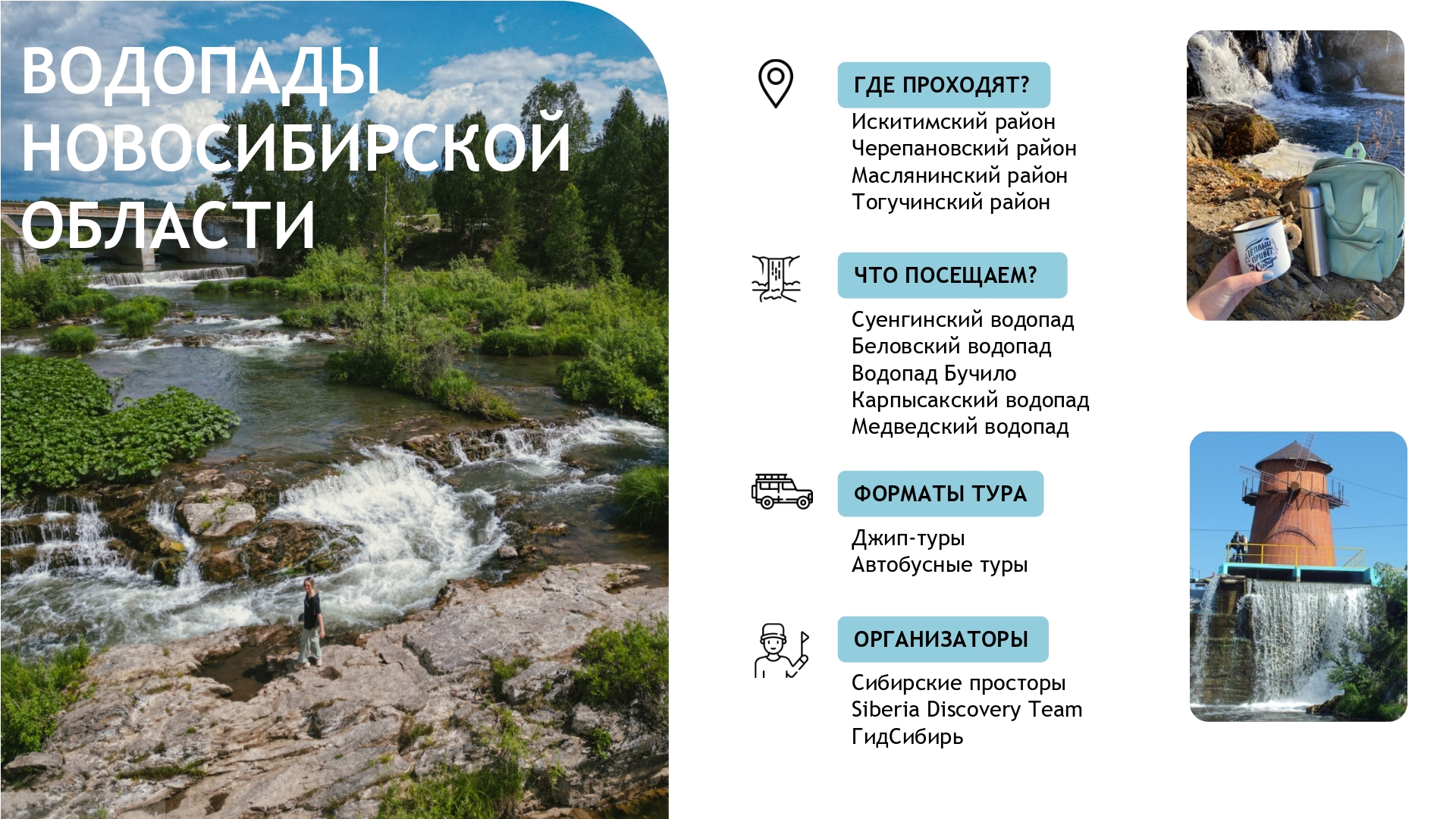 Особую популярность приобретают экотропы, например, «Обская песчаная степь» и «Шарчинская степь» в Сузунском муниципальном округе, а также «Суенга» и «Таёжник» в Маслянинском районе. Живописными местами и маршрутами могут похвастаться и другие районы области. Подробнее — на региональном туристско-информационном портале Новосибирской области: golnk.ru/XGAWL.