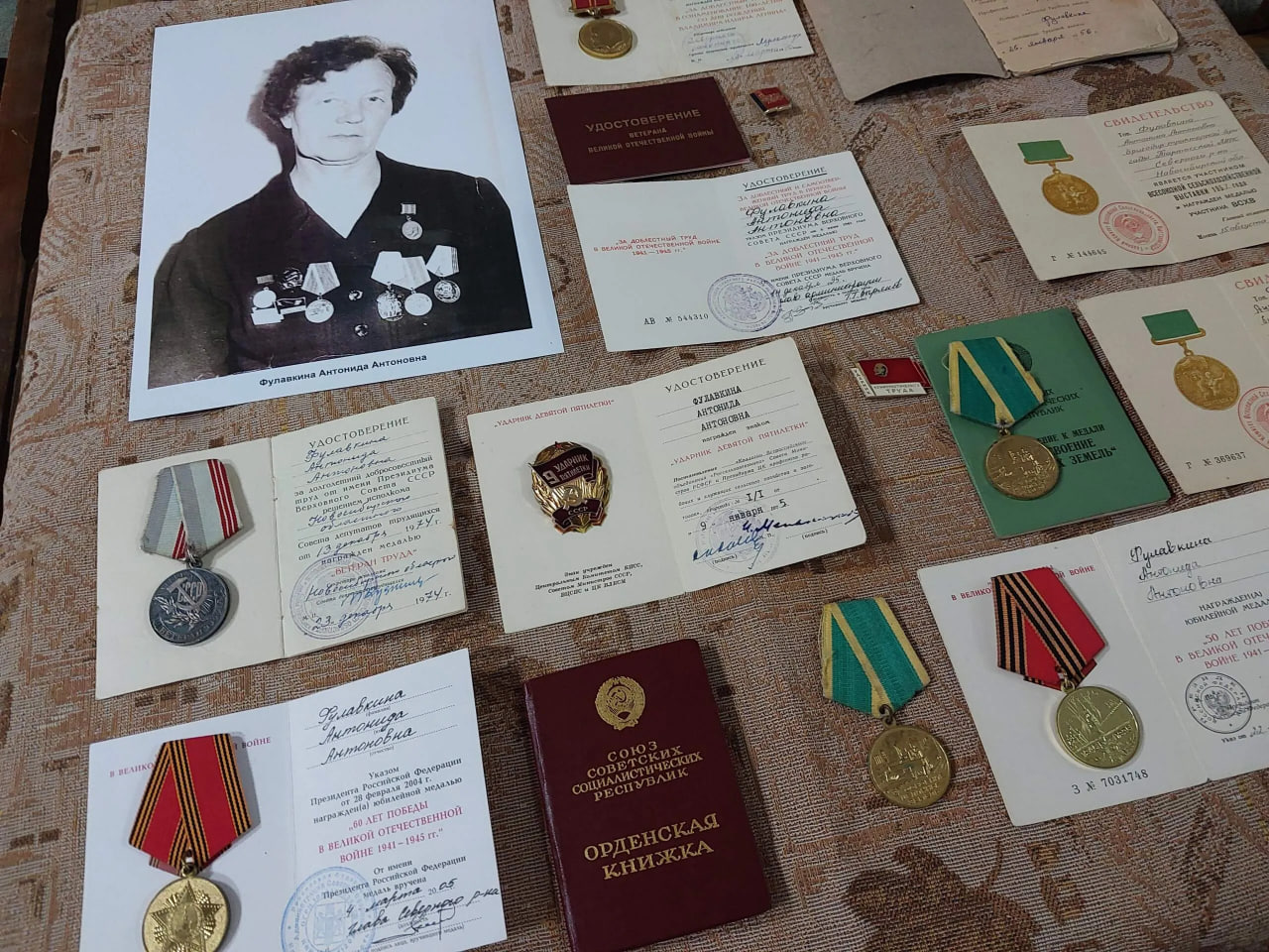 В витринах представлены фотографии, репродукции, книжные издания, отражающие события тех лет, ксерокопии документов той эпохи, предметы, имеющие отношение к ней. Вот и сейчас фонды музея пополнились новыми экспонатами — коллекцией личных наград труженицы тыла, ветерана труда Антонины Антоновны Фулавкиной. 23 предмета передала внучка Елена Тишечко. Основную часть реликвий составляют награды и документы к ним, в том числе награда за доблестный труд в годы Великой Отечественной войны.