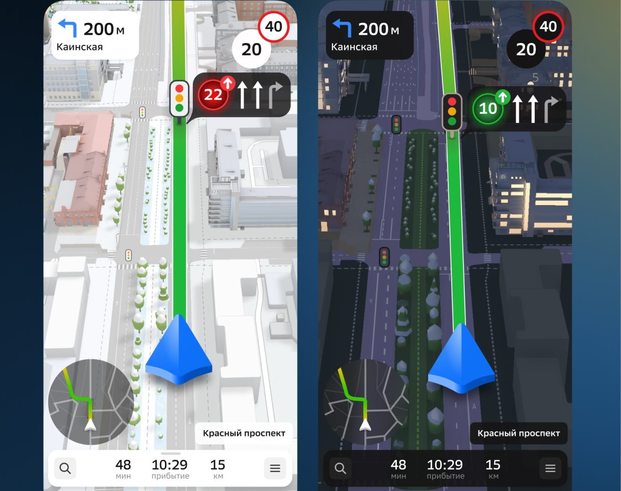 Данные со светофоров предоставляются Центром организации дорожного движения. Технология синхронизируется со светофорами, подключенными к интеллектуальной транспортной системе, и показывает именно тот сигнал и таймер, который актуален для текущего маршрута пользователя. Это исключает путаницу на дорогах и делает поездки безопаснее.