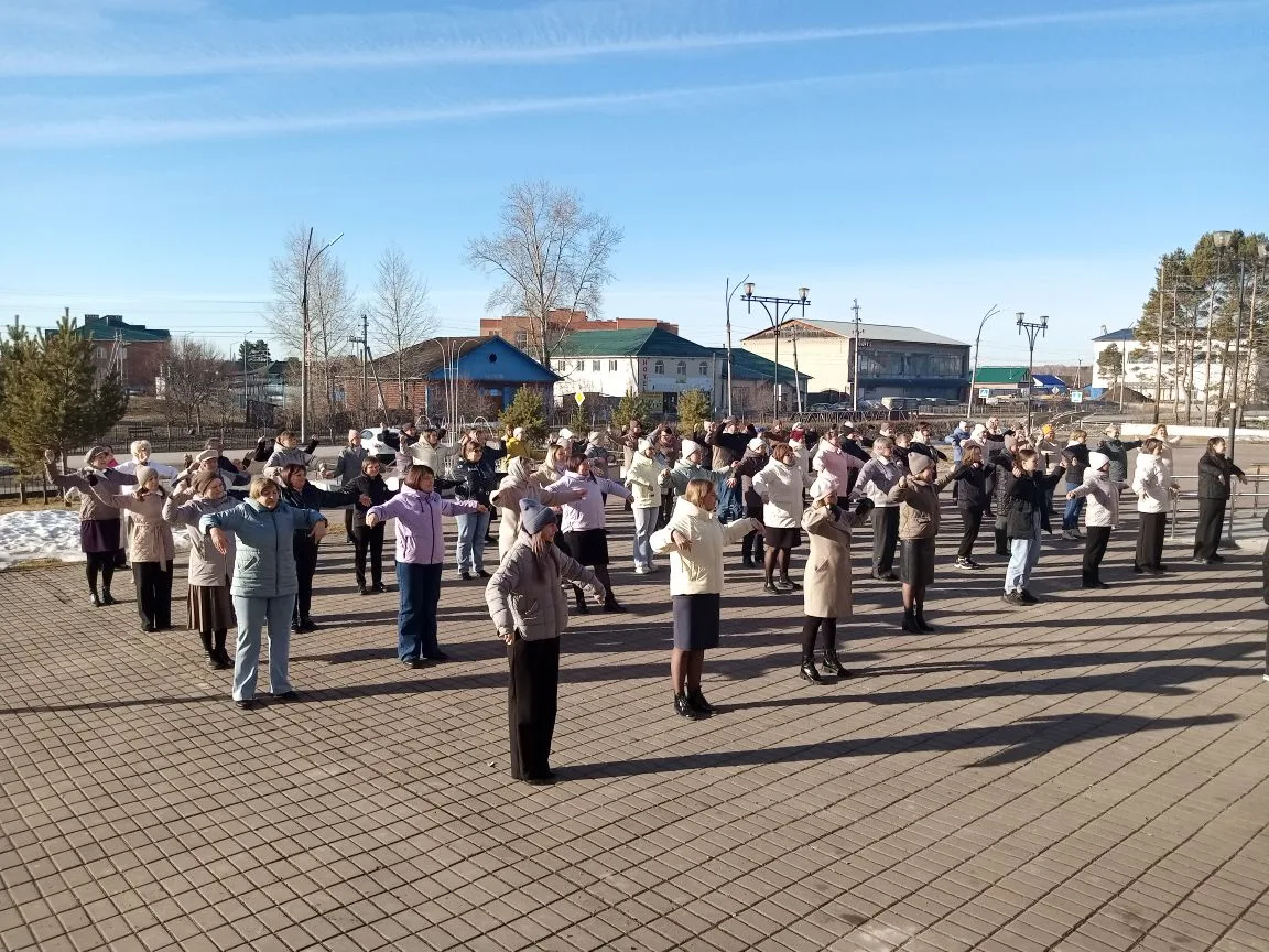 Зарядиться с утра вышли специалисты администрации, работники центральной библиотеки, КДЦ, ДШИ, ЦДО, КЦСОН и других организаций района. Участники собрались на массовую зарядку, чтобы поддержать главный тренд года — заботу о здоровье.