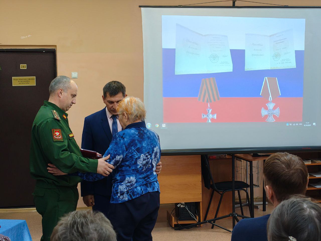Удостоверения к государственным наградам, Орден Мужества и знак отличия Ордена Святого Георгия – Георгиевский крест 4 степени вручены Раисе Похлёбиной, матери Алексея Похлёбина.
