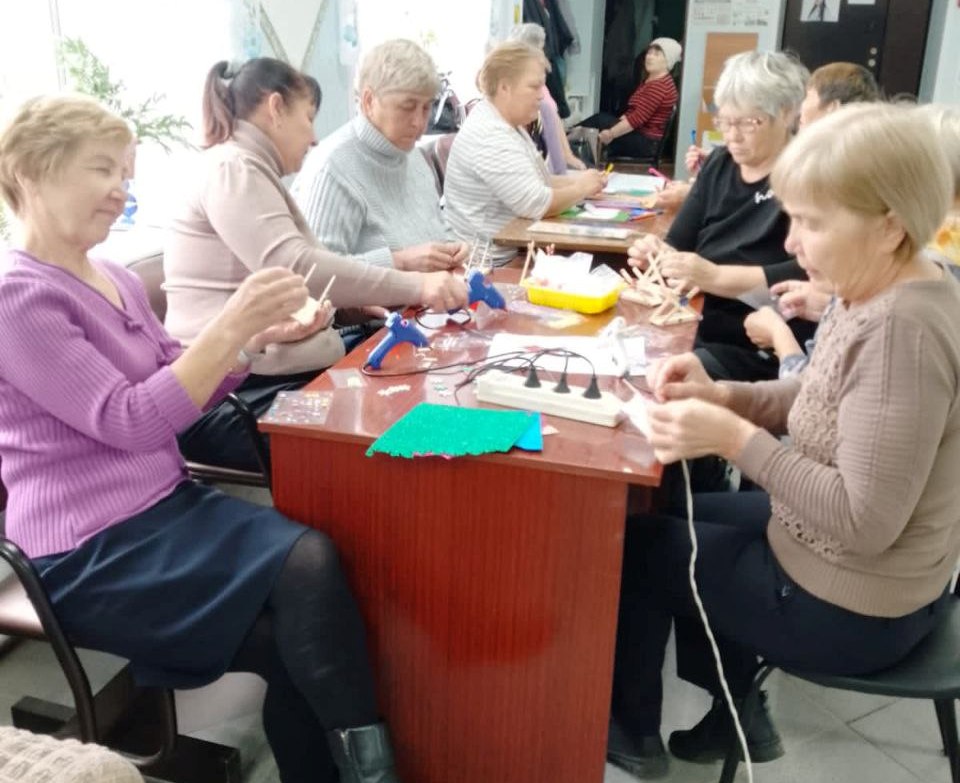 Затем ветеранов пригласили в сельский клуб, где работники культуры провели с ними мастер класс по изготовлению «салфетниц».