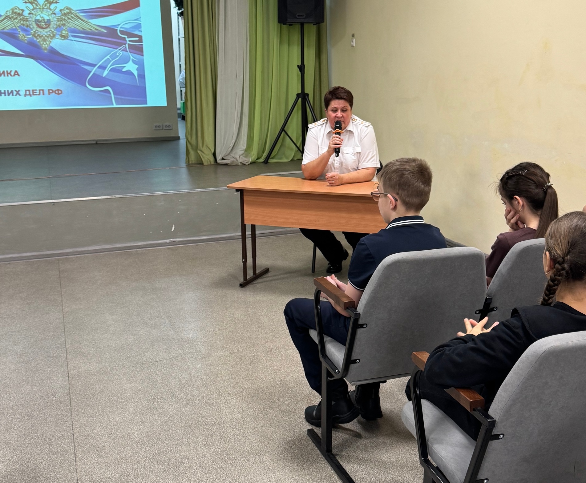 Очередная встреча прошла с сотрудником МВД России. В День профессионального праздника — День сотрудников органов внутренних дел РФ — на беседу со школьниками пришла майор полиции Елена Эшмуратова.