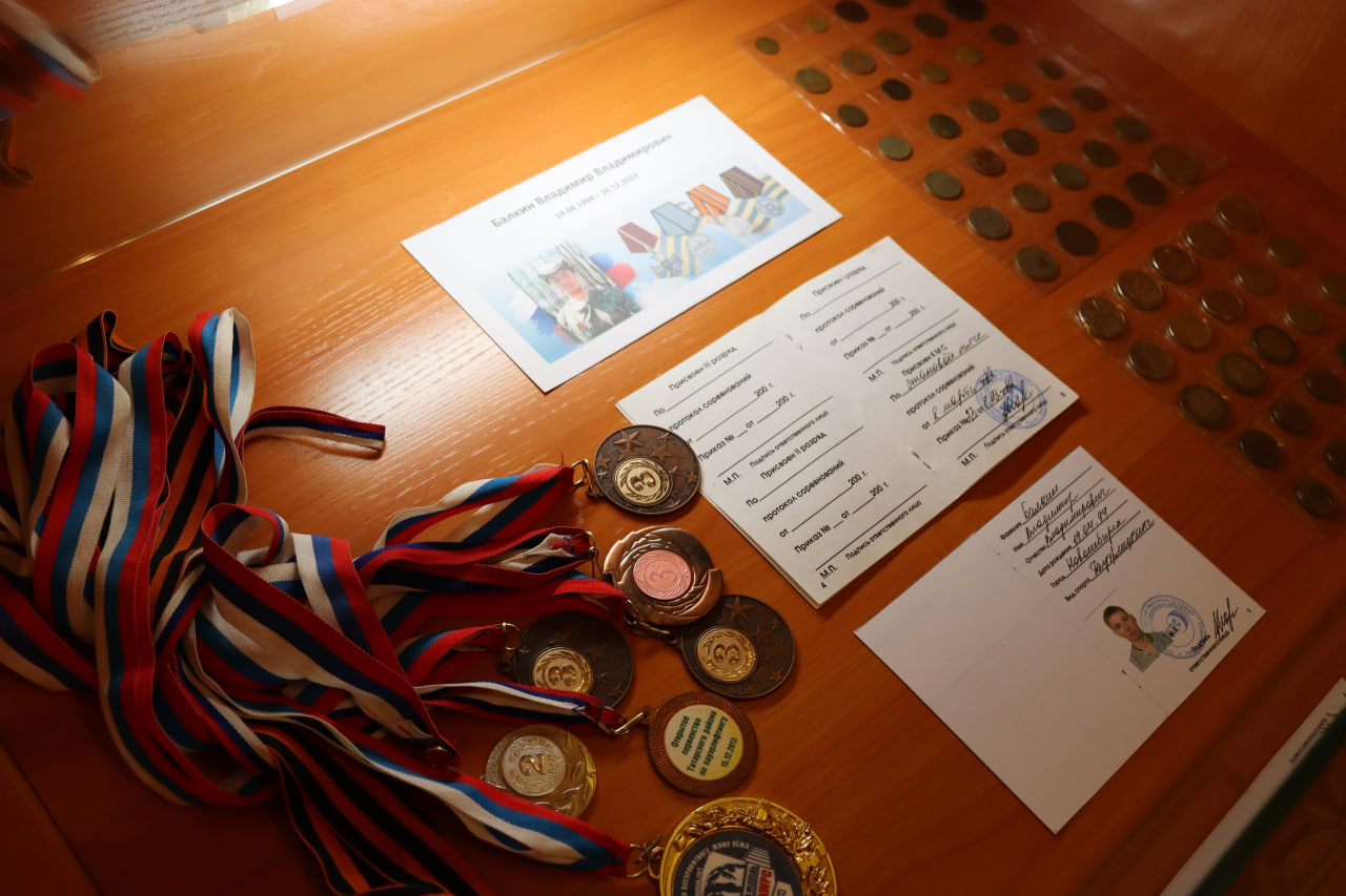 На витринах представлены разнообразные коллекции и личные достижения: сплетённая кольчуга, старинные монеты, медали за успехи в пауэрлифтинге, авторское стихотворение, альбом с надписями и личными фото из зоны СВО, коллекция марок, а также диски с видеоиграми. По словам организаторов, выставка помогает понять какими творческими и увлеченными были парни в мирной жизни.