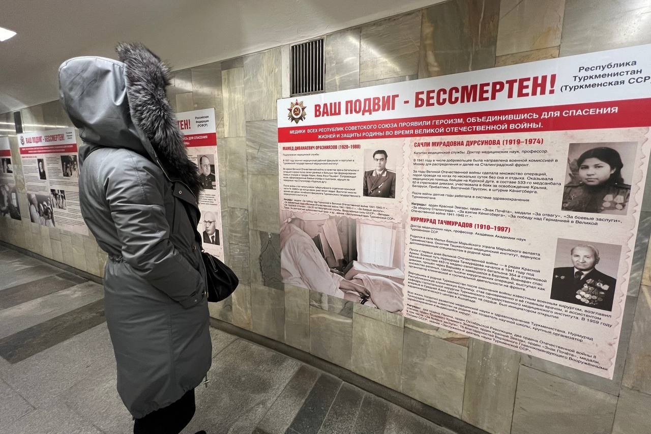 В Новосибирском метрополитене продолжает свою работу выставка, посвященная героизму врачей, медсестер, санитаров и фельдшеров из всех республик СССР. В годы Великой Отечественной войны в невероятно сложных условиях они возвращали в строй бойцов, боролись с эпидемиями и обеспечивали санитарную безопасность.